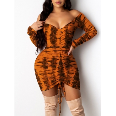 Lovely Party Off The Shoulder Drawstring Brown Mini Dress