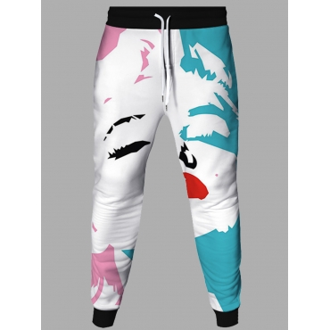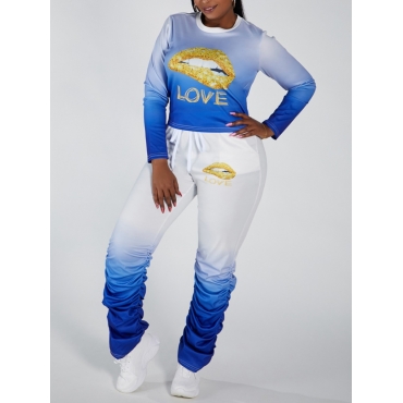 Lovely Sportswear O Neck Lip Print Blue Plus Size Two-piece Pants Set