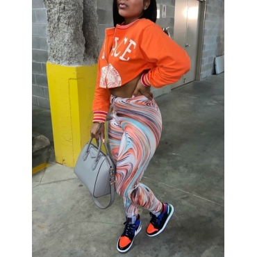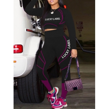 Lovely Street O Neck Letter Print Zipper Design Croci Two Piece Pants Set