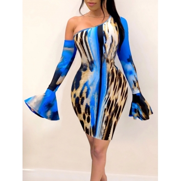 Lovely Stylish Print Skinny Blue Knee Length Sheath Dress