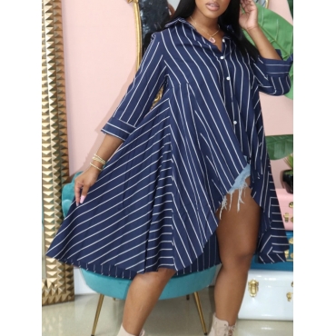 Lovely Street Striped Patchwork Asymmetrical Dark Blue Blouse