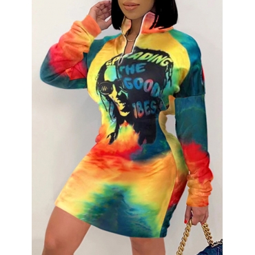 Lovely Street Graffiti Print Tie-dye Yellow Knee Length Dress