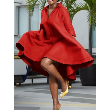 Lovely Casual Turndown Collar Loose Asymmetrical Red Knee Length Dress