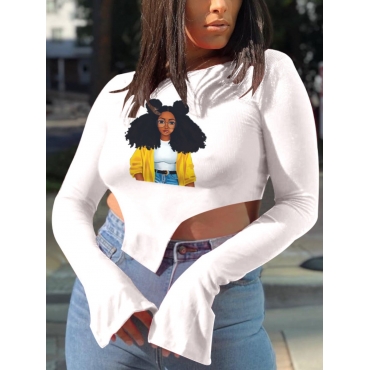 Lovely Chic Portrait Print Asymmetrical White T-shirt