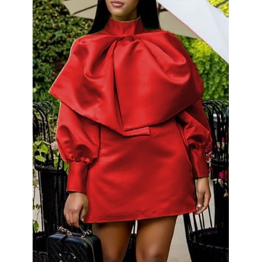Lovely Sweet High Neck Fold Design Red Mini Dress