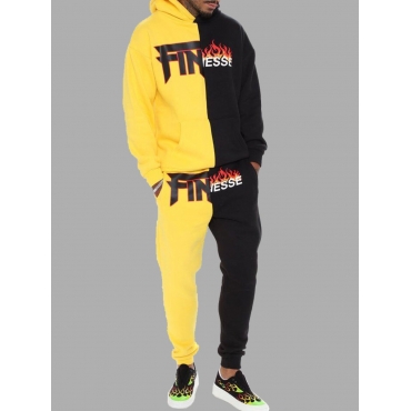 Lovely Trendy Hooded Collar Letter Patchwork Yellow Men Two-piece Pants Set
