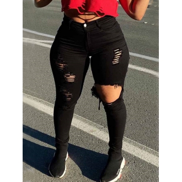Lovely Trendy High-waisted Hollow-out Black Jeans