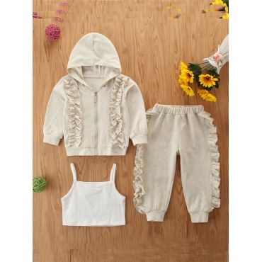 Lovely Sweet Hooded Collar Stringy Selvedge Light Grey Girl Two-piece Pants Set