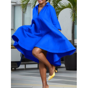 Lovely Casual Turndown Collar Loose Asymmetrical Blue Knee Length Dress