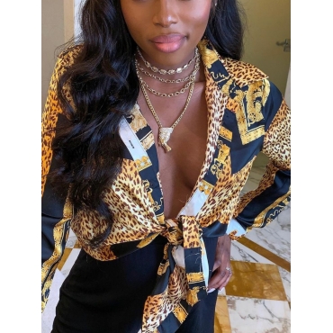Lovely Stylish Leopard Print Patchwork Yellow Blouse
