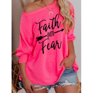 Lovely Casual Letter Print Loose Rose Red Plus Size Hoodie