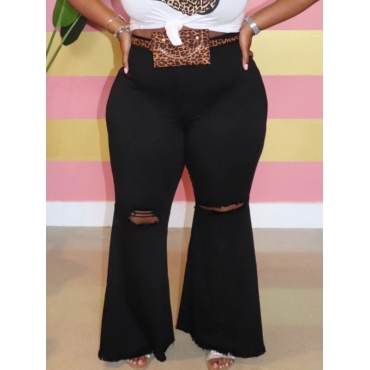Lovely Casual Broken Holes Black Plus Size Jeans