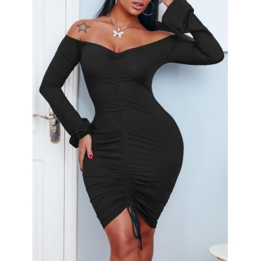 Lovely Trendy V Neck Fold Design Black Mid Calf Dress