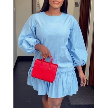 Lovely Sweet O Neck Fold Design Blue Knee Length Dress