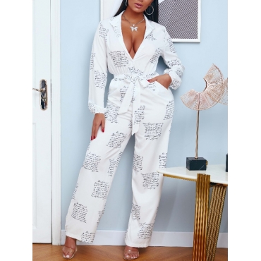 Lovely Casual Letter Print Lace-up White One-piece Jumpsuit