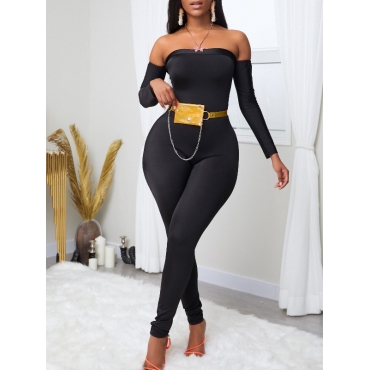 Lovely Sexy Dew Shoulder Black One-piece Jumpsuit