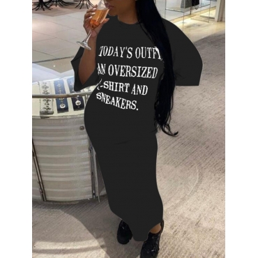 Lovely Casual O Neck Letter Print Black Ankle Length Dress