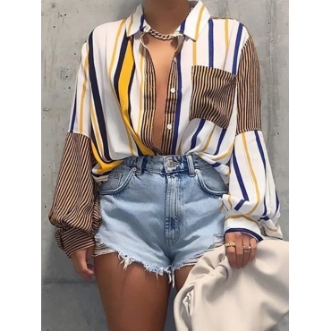 Lovely Casual Turndown Collar Striped Patchwork Brown Shirt