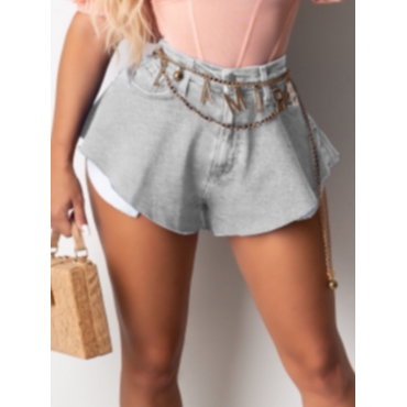Lovely Casual Asymmetrical Baby Blue Denim Shorts