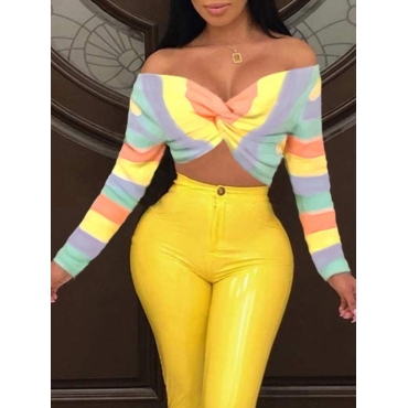Lovely Trendy Rainbow Striped Knot Design Blue T-shirt
