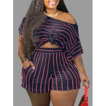 Lovely Casual Striped Blue Plus Size Two-piece Shorts Set