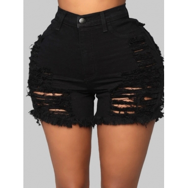 Lovely Trendy Broken Holes Black Plus Size Shorts
