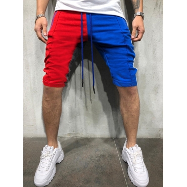 Lovely Men Casual Drawstring Patchwork Red Shorts