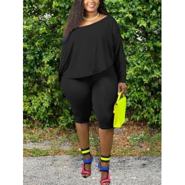 Lovely Leisure Basic Skinny Black Plus Size Two-piece Shorts Set