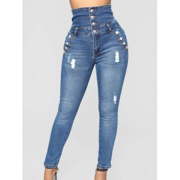 Lovely Trendy High-waisted Broken Holes Blue Jeans