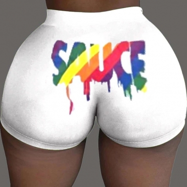 Lovely Sportswear Letter Print White Shorts