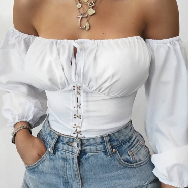 Lovely Trendy Dew Shoulder Fold Design White Blouse