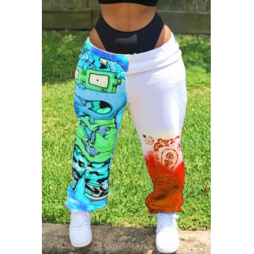 Lovely Street Print Patchwork Skyblue Pants
