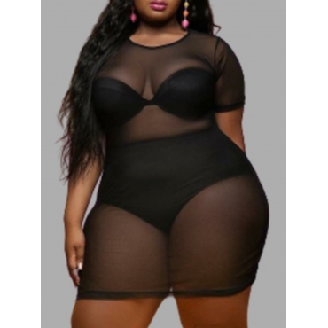 lovely Sexy O Neck See-through Black Mini Plus Size Dress