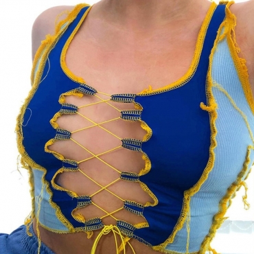 Lovely Street Bandage Design Patchwork Blue Camisole