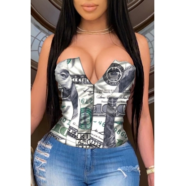 Lovely Sexy Dew Shoulder Print Whtie Camisole