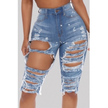 Lovely Sexy Hollow-out Blue Denim Shorts