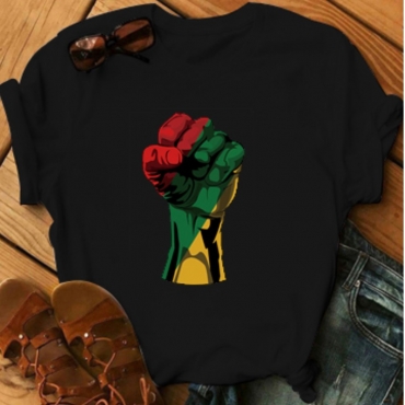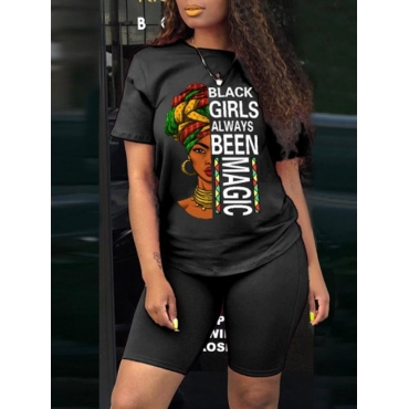 Lovely Casual O Neck Print Black Two-piece Shorts Set