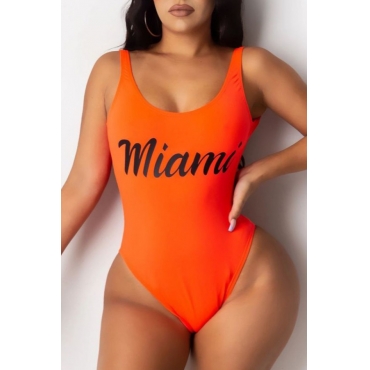 lovely Letter Print Yellow Plus Size One-piece Swimsuit