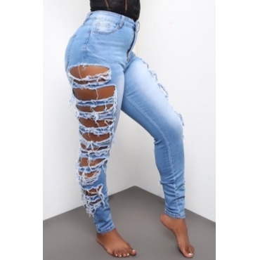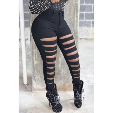 Lovely Casual High-waisted Broken Holes Black Jeans