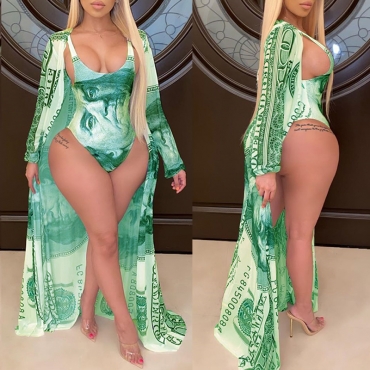 Lovely Print Green Plus Size One-piece Swimsuit(With Cover-up)