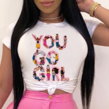 Lovely Casual O Neck Letter Print Pink T-shirt