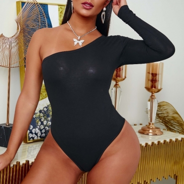 Lovely Sexy One Shoulder Skinny Black Bodysuit