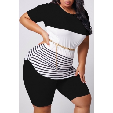 lovely Casual Patchwork Black Plus Size Two-piece Shorts Set
