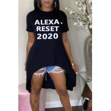 Lovely Casual Letter Print Asymmetrical Black T-shirt