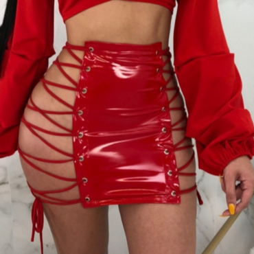 Lovely Sexy Bandage Design Red Skirt