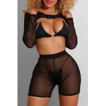 Lovely See-through Black Four-piece Swimsuit