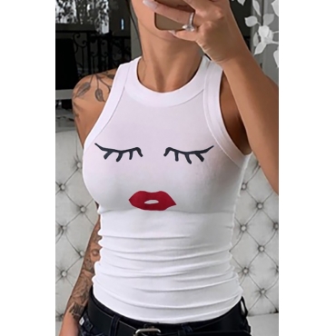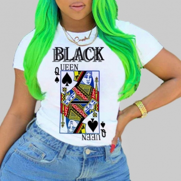 Lovely Leisure O Neck Print White T-shirt