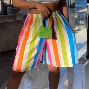 Lovely Casual Rainbow Striped Multicolor Shorts