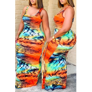 Lovely Bohemian U Neck Print Croci Maxi Plus Size Dress