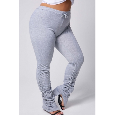 Lovely Casual Fold Design Grey Plus Size Pants